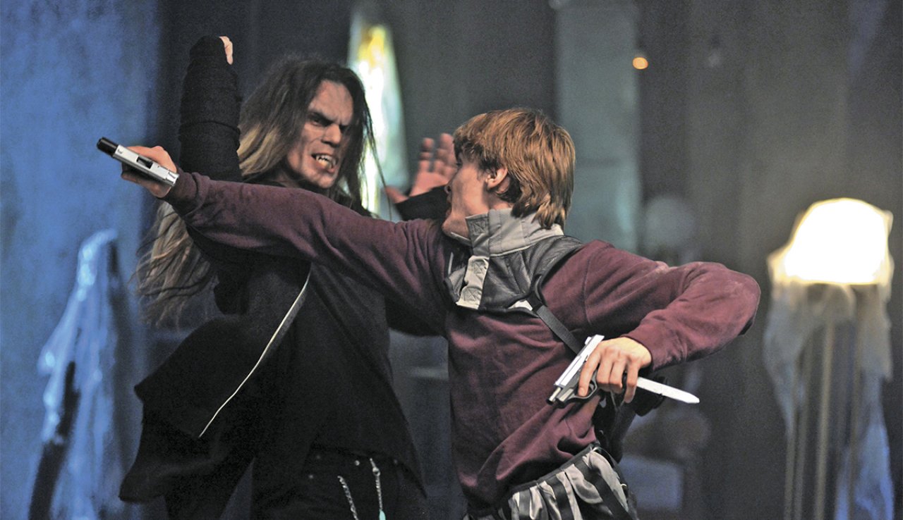 «Ночные стражи», к/с «Марс Медиа Энтертейнмент», 2016, реж. Э. ВеливисПаша считает себя неудачником — он работает обычным курьером и в его жизни нет абсолютно ничего интересного, да и особых перспектив тоже нет. Однажды в отеле он встречает певицу Дану, в которую влюбляется с первого взгляда, но не успевает ей сказать и пары слов, как вдруг в гостиничном коридоре начинается бойня… Так Паша знакомится с майором Гамаюном и сотрудниками отдела «Н», защищающими людей от нежити. У него оказывается талант чувствовать потустороннюю силу, поэтому его принимают на новую работу и теперь ему некогда скучать, тем более что он влюбился в вампиршу!